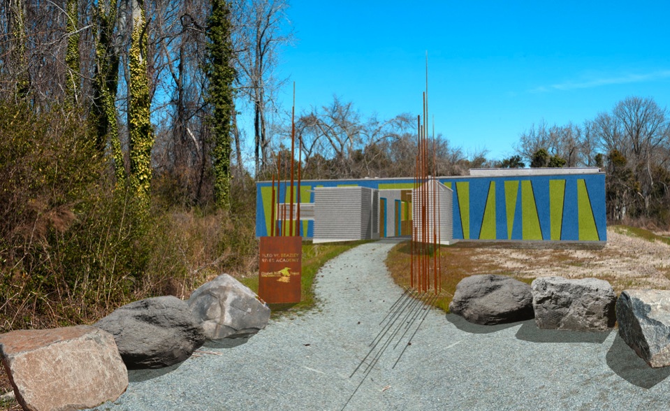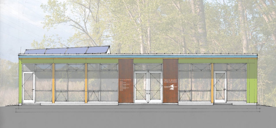 Located in a forest clearing at the Paradise Creek Nature Park, and within a larger landscape of massive industrial structures and the Portsmouth Naval Shipyard, the River Academy will containa public meeting and exhibition space, environmental education classroom, and offices. Crisman+Petrus Architects designed the building with integrated sustainable systems, including natural ventilation and daylighting, electricity generated by photovoltaic panels, rainwater collection and filtration, composting toilets, and a graywater treatment garden. We optimized solar income by orienting the building based on careful study of the erratic fall and spring climate of Portsmouth. RRMM Architects are the local architect of record. Construction began in July 2017 and completion is planned for spring 2018.