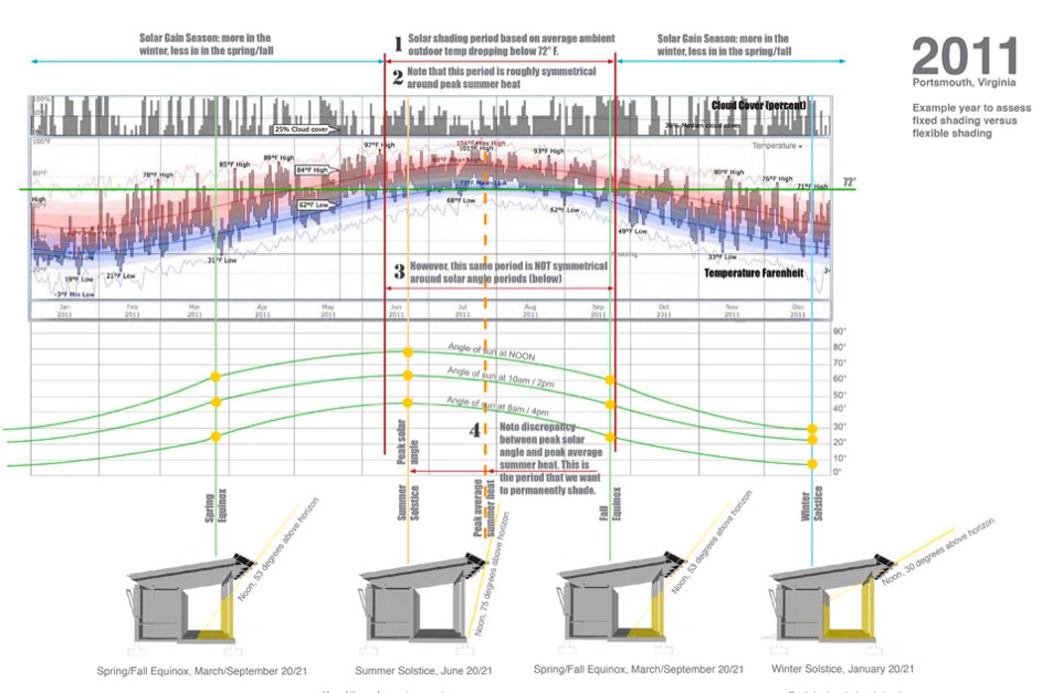 • Building oriented to optimize passive solar heating in winter, shading in summer