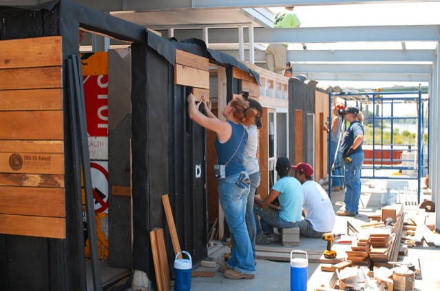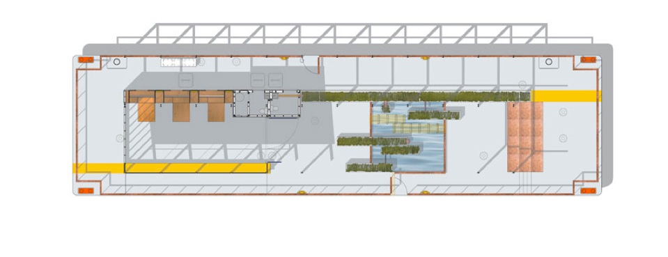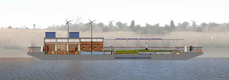 The Learning Barge is a mobile, 32'x120' environmental field station built for the Elizabeth River Project whose mission is to clean up the Elizabeth River, one of the most contaminated estuaries of the Chesapeake Bay. The Barge is off-the-grid, powered solely by site-based solar and wind energy systems. It collects its own rainwater, composts waste and filters its waste water through an on board wetland. Crisman+Petrus Architects conceived the Learning Barge concept as a crucial component of the Money Point Sustainable Revitalization Plan in 2005. The intention was to create a moveable platform where citizens could learn about the processes of river sediment remediation, tidal wetland restoration, and the sustaining co-existence of human and ecological systems at Money Point and other Elizabeth River restoration sites. In January 2006 Phoebe Crisman brought the project to the University of Virginia School of Architecture, where she led a four-year research, design, and fabrication effort by multi-disciplinary teams of UVA students and faculty. The holistic, integrated design approach involved multiple disciplines and several public, private, and governmental organizations.